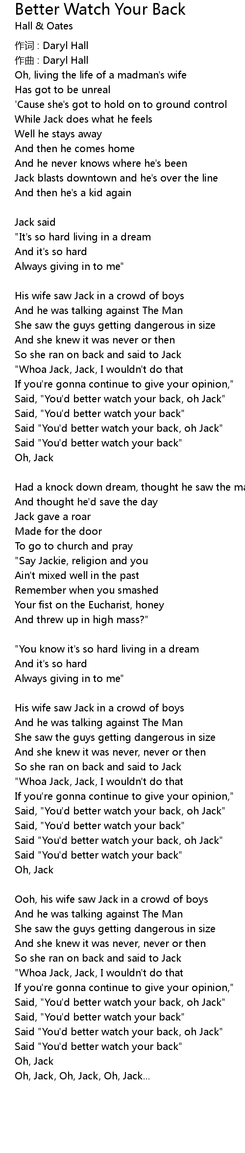 | Said " You' d better watch your back, oh Jack" | |