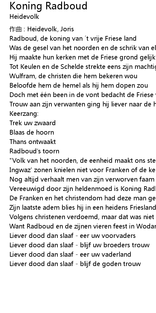 | Vereeuwigd door zijn heldenmoed is Koning Radboud' s naam | |