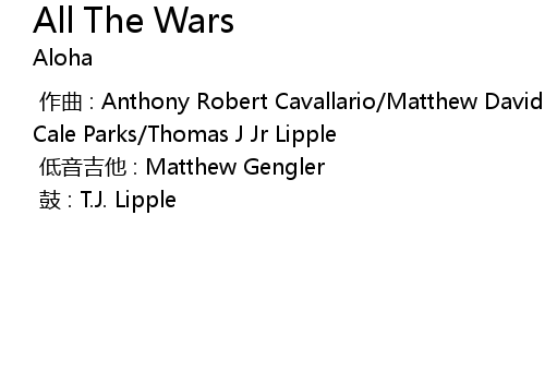 | [00:00.000] | 作曲 : Anthony Robert Cavallario/Matthew David Gengler/Michael Cale Parks/Thomas J Jr Lipple |