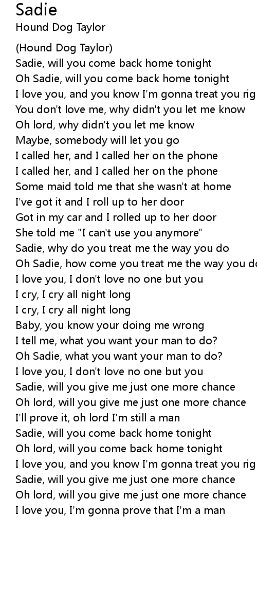 Oh Sadie, will you come back home tonight |