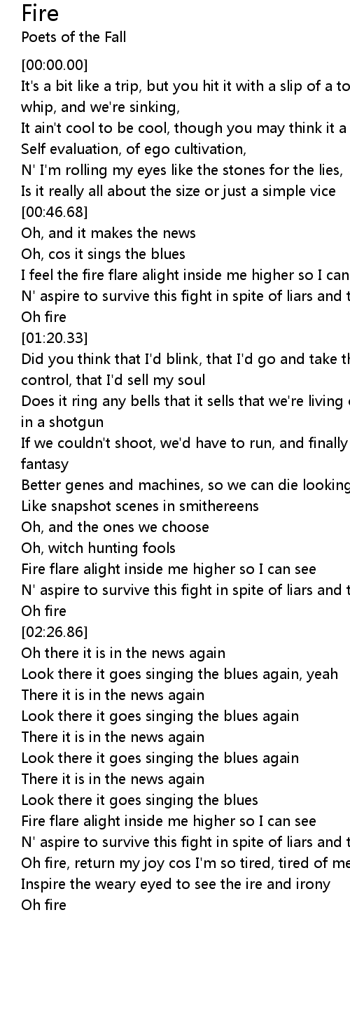 [03:30.11] Oh fire, return my joy cos I'm so tired, tired of me