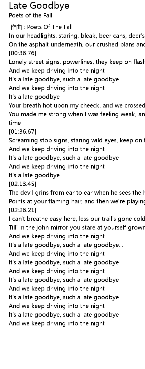 | [03:31.35] | It's a late goodbye, such a late goodbye |