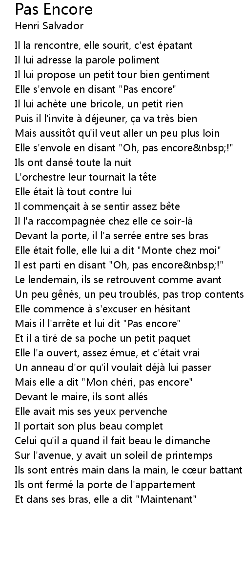 | Mais elle a dit " Mon ché ri, pas encore" | |