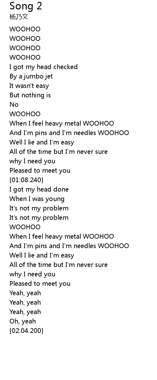| 歌曲 | Song 2 |