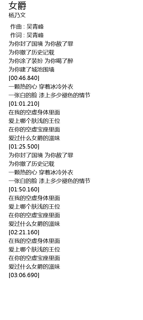 | [02:58.140] | 爱过什么女爵的滋味 |