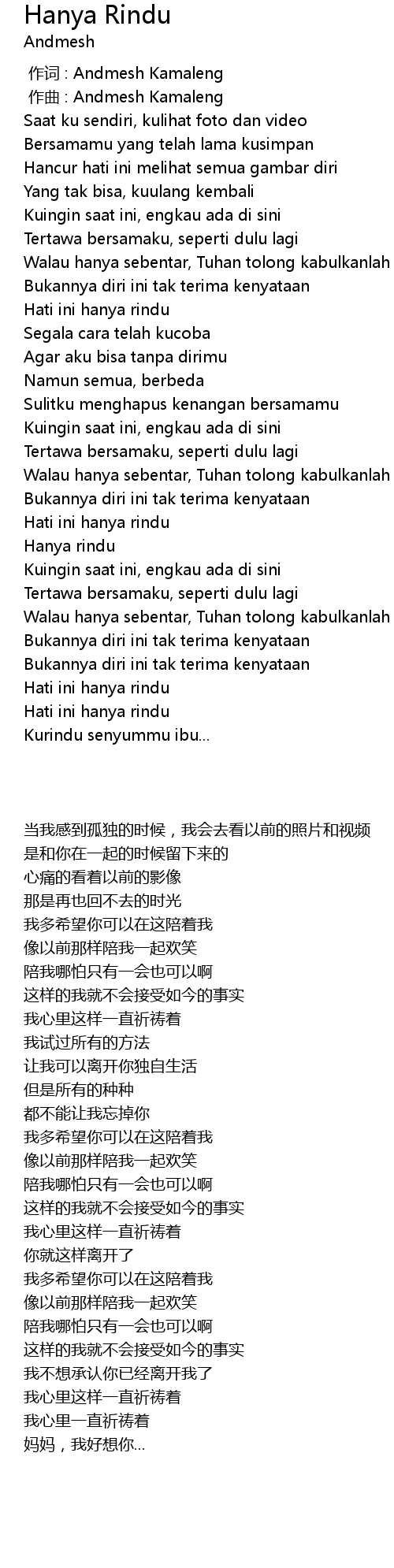 | [00:00.000] | 作词 : Andmesh Kamaleng |