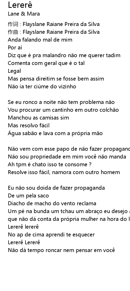 | 作词 : Flayslane Raiane Preira da Silva | |