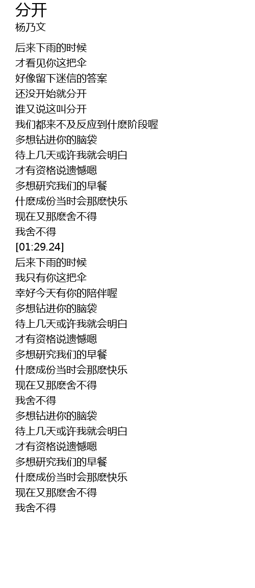 | [00:34.17] | hái méi kāi shǐ jiù fēn kāi |