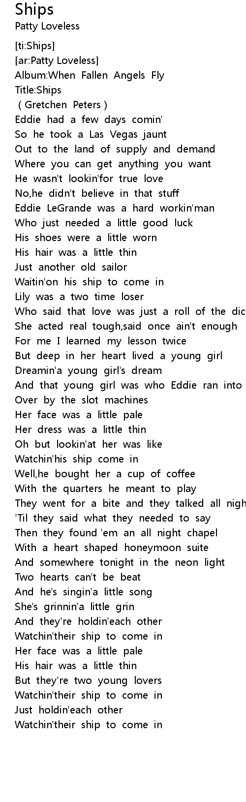 | [01:14.79] | She acted real tough,said once ain't enough |
