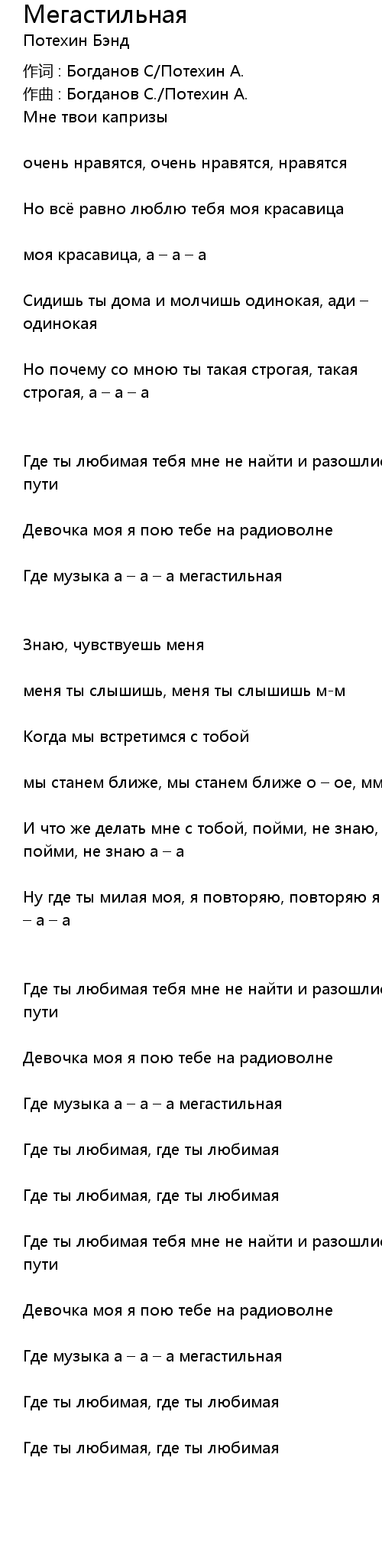 作词 : Богданов С/Потехин А. |