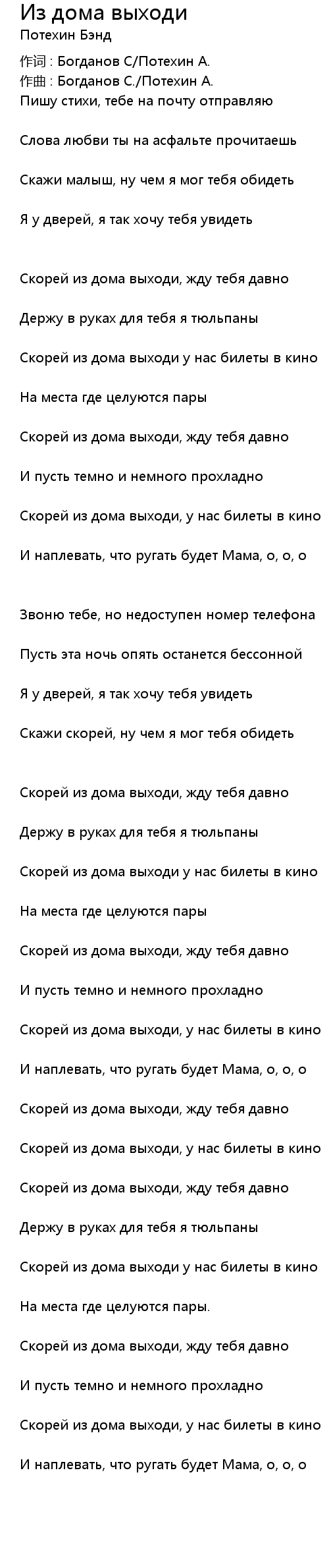 Из дома выходи 歌词