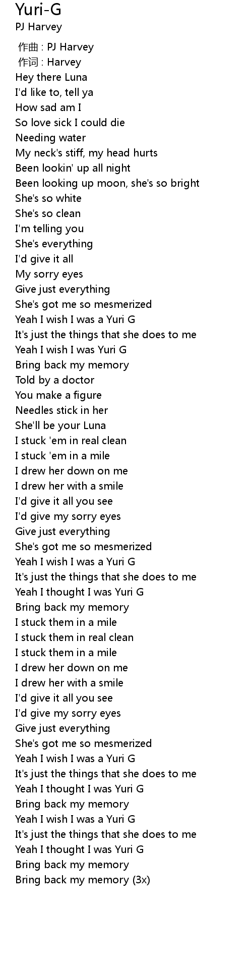 | [02:51.50] | Yeah I wish I was a Yuri G |