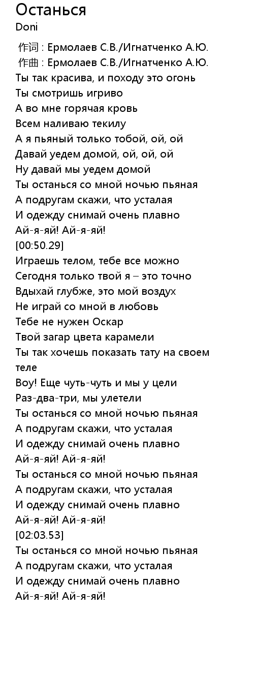 [00:00.000] 作词 : Ермолаев С.В./Игнатченко А.Ю.