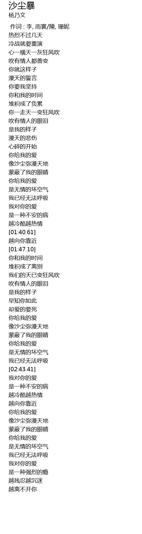 | [00:00.00] | 作词 : 李, 雨寰/陳, 珊妮 |