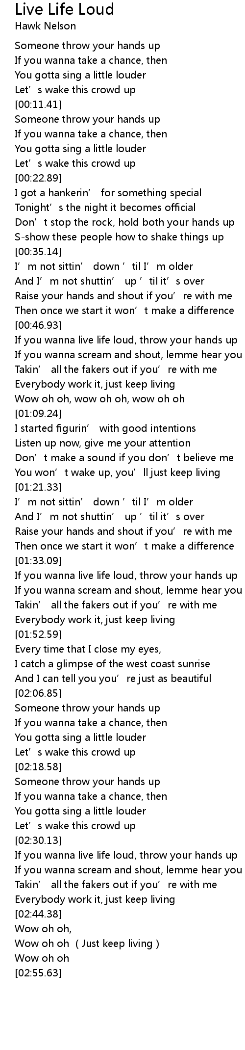 | [00:47.26] | If you wanna live life loud, throw your hands up |