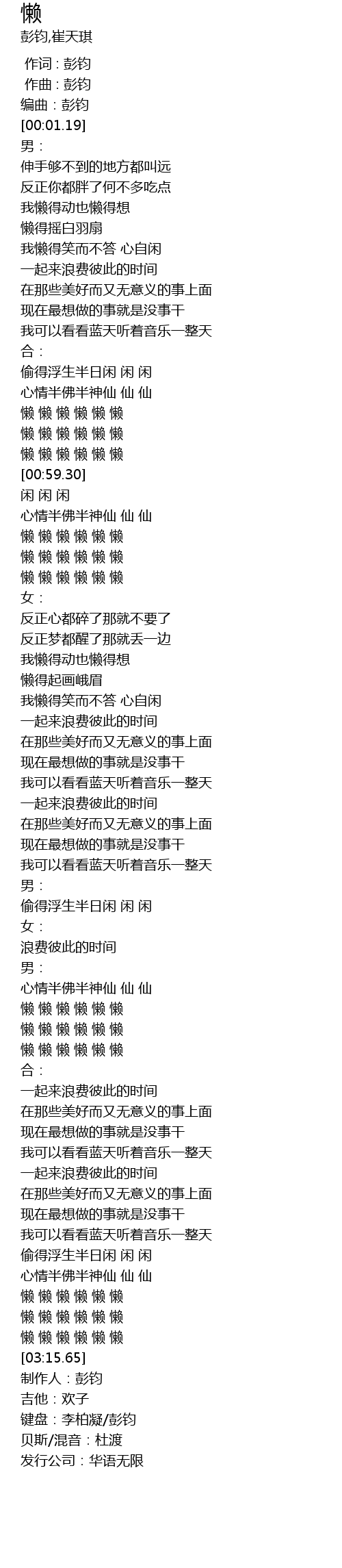| [03:10.13] | 懒 懒 懒 懒 懒 懒 |
