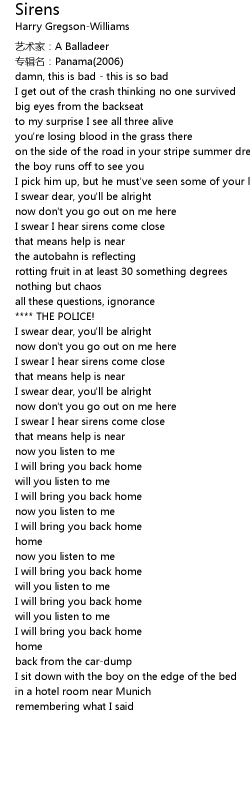 | I swear I hear sirens come close | |