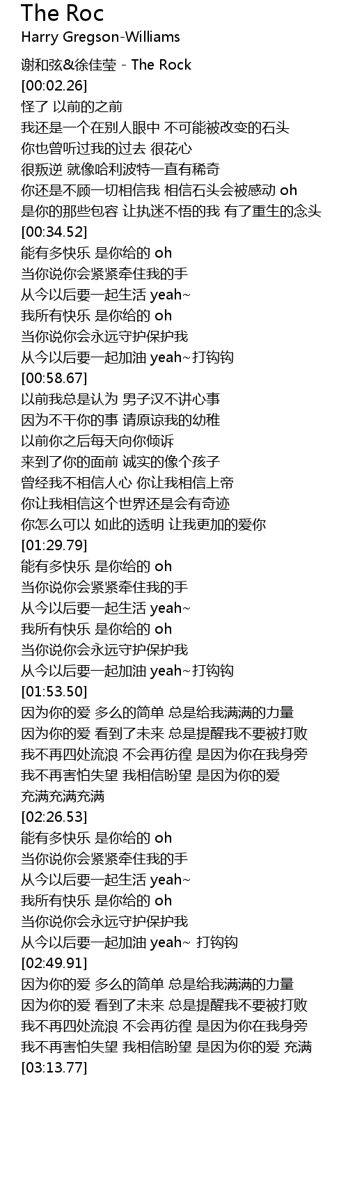 | [00:00.03] | xie he xian xu jia ying The Rock |