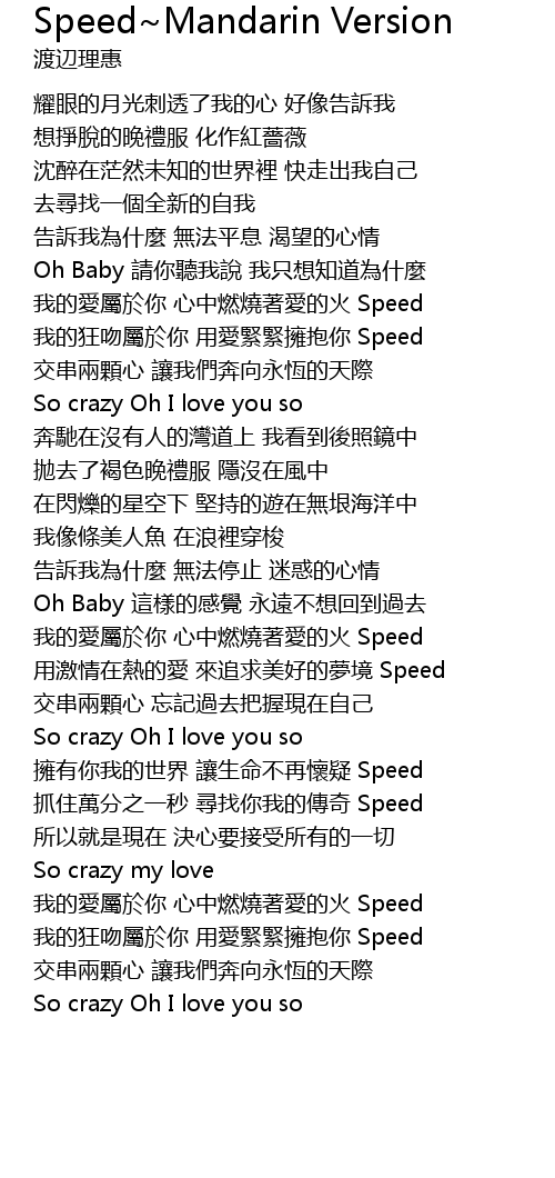 | 歌曲 | Speed~Mandarin Version |