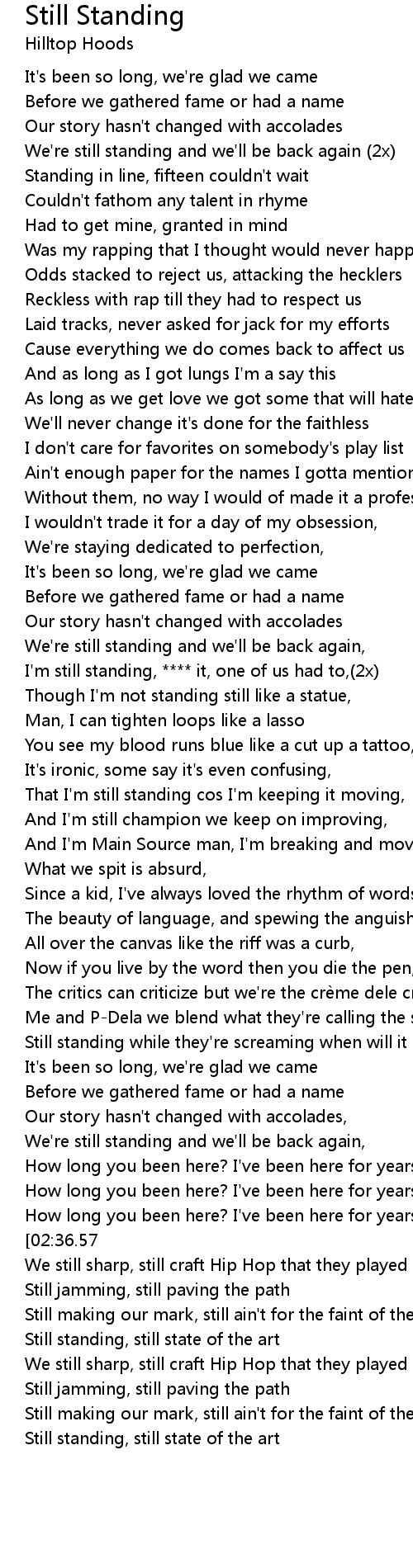 | [03:04.46] | Still standing, still state of the art |