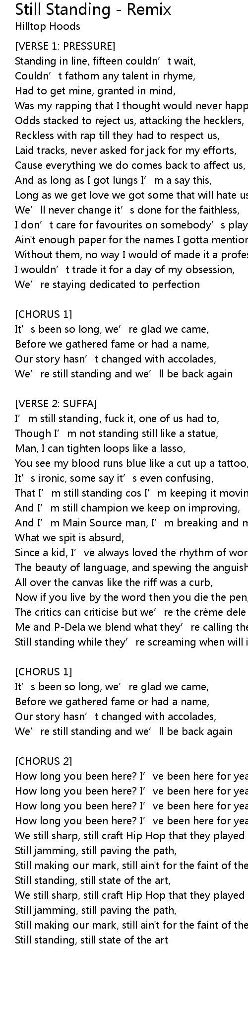 | That I' m still standing cos I' m keeping it moving, | |