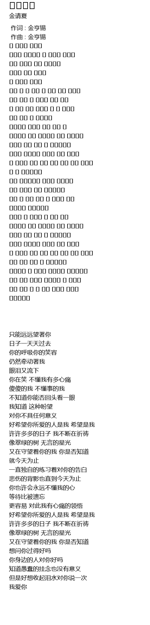 | [01:42.349] | 푸르른 나무처럼 말없이 빛난 별처럼 |