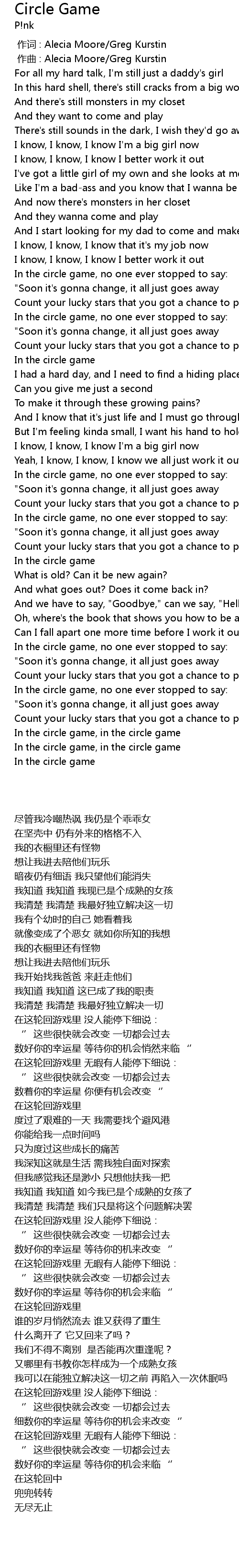 | [00:00.000] | 作词 : Alecia Moore/Greg Kurstin |