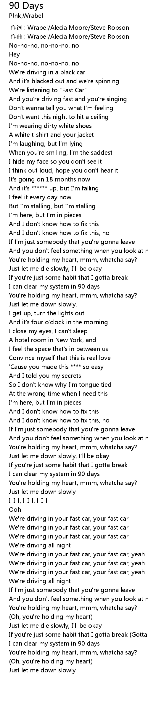| [00:00.000] | 作词 : Wrabel/Alecia Moore/Steve Robson |
