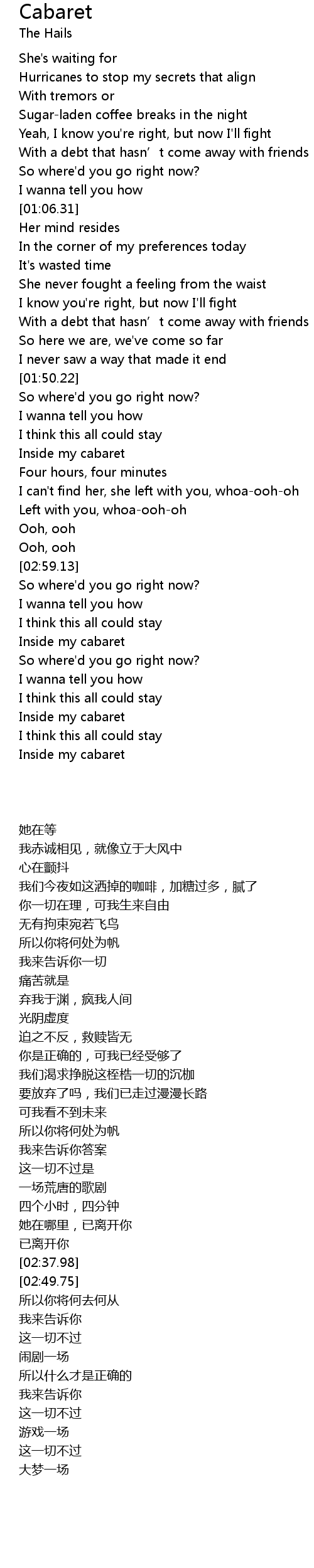 | [03:51.04] | Inside my cabaret |
