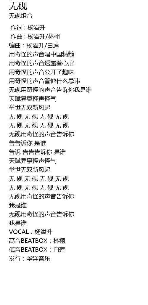 | [03:05.45] | 高音BEATBOX:林栩 |