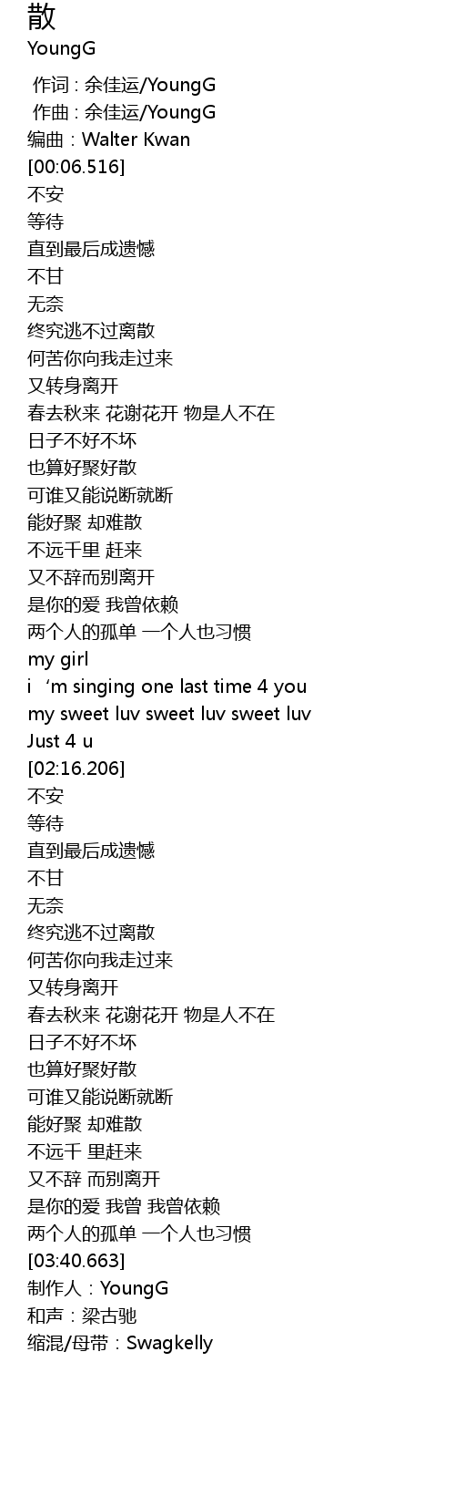 | [03:46.300] | 制作人:YoungG |