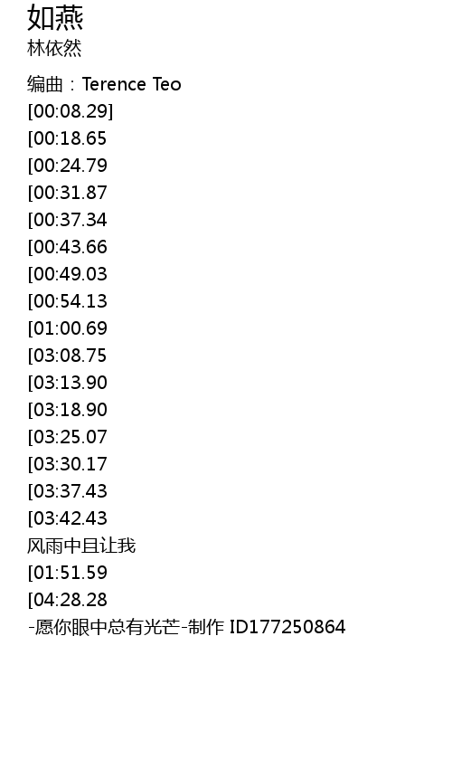 | [00:06.30] | 编曲:Terence Teo |