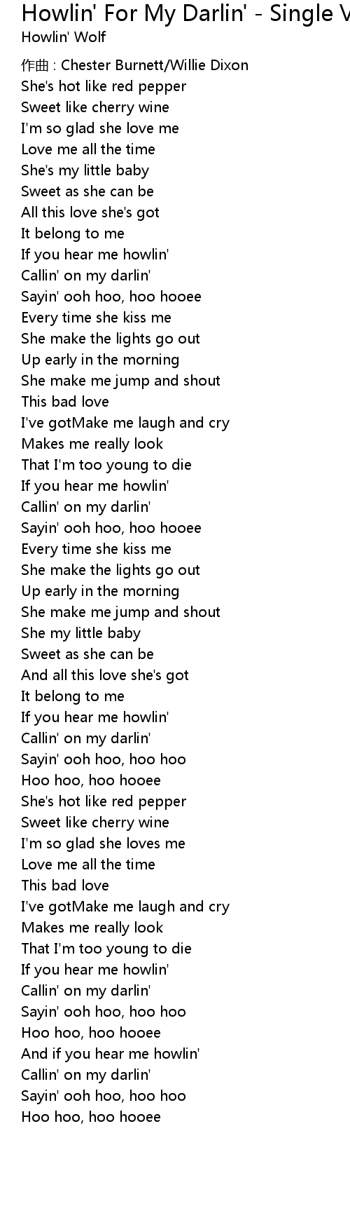 | 歌曲 | Howlin' For My Darlin' - Single Version |
