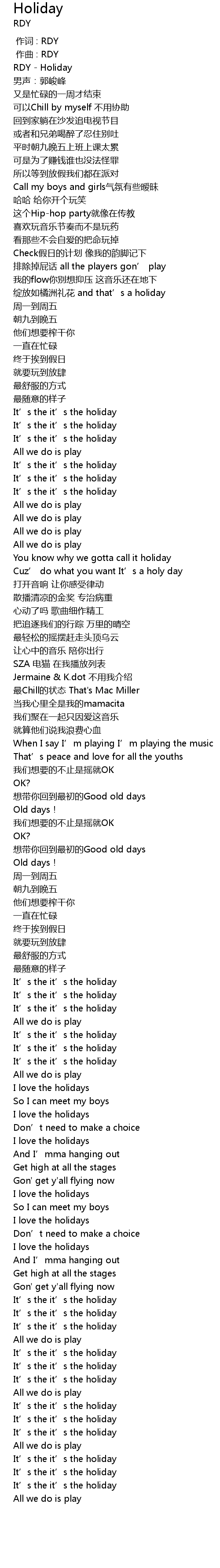 | [01:27.101] | You know why we gotta call it holiday |