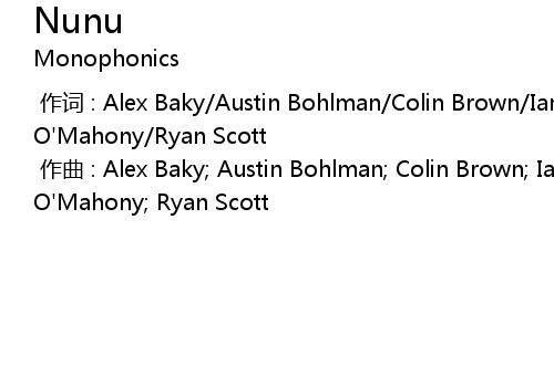 | [00:00.000] | 作曲 : Alex Baky; Austin Bohlman; Colin Brown; Ian McDonald; Myles O'Mahony; Ryan Scott |