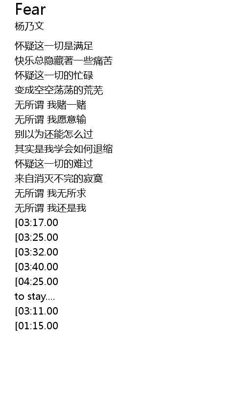 | [04:33.00][03:11.00][03:04.00] | to stay.... |