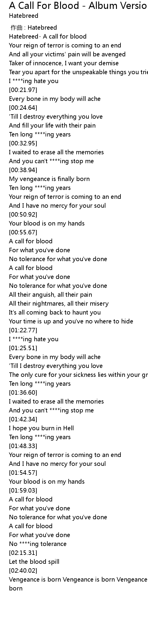 | 歌曲 | A Call For Blood - Album Version (Explicit) |
