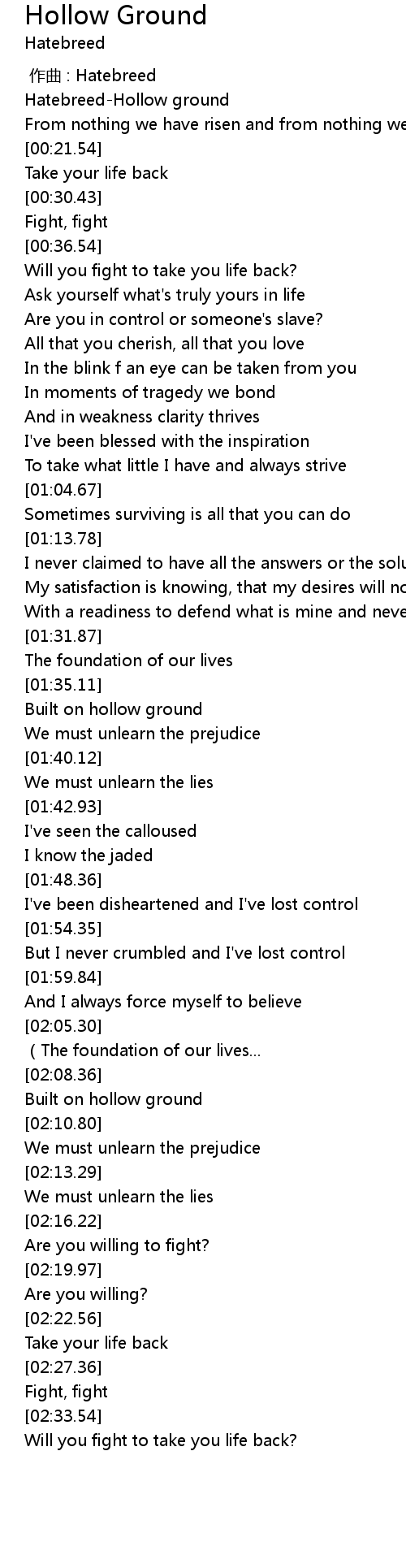 | [01:35.67] | Built on hollow ground |