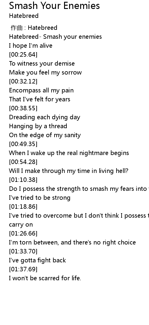 | [00:00.80] | Hatebreed- Smash your enemies |
