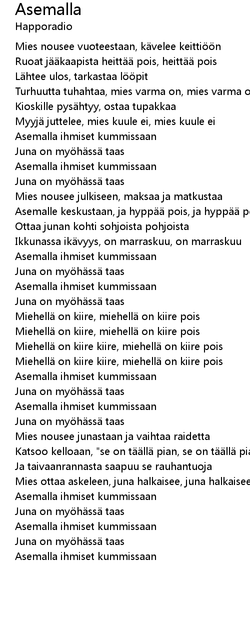 | Asemalle keskustaan, ja hypp pois, ja hypp pois | |
