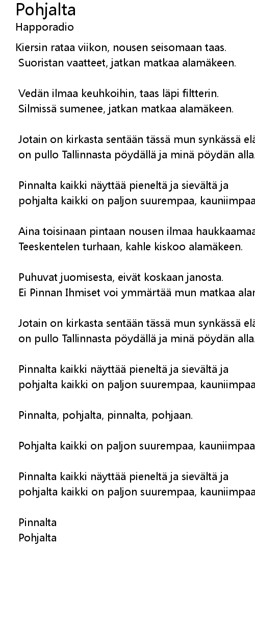 | 歌曲 | Pohjalta |