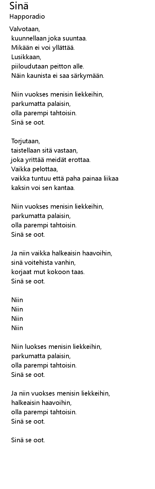 | 歌曲 | Sinä |