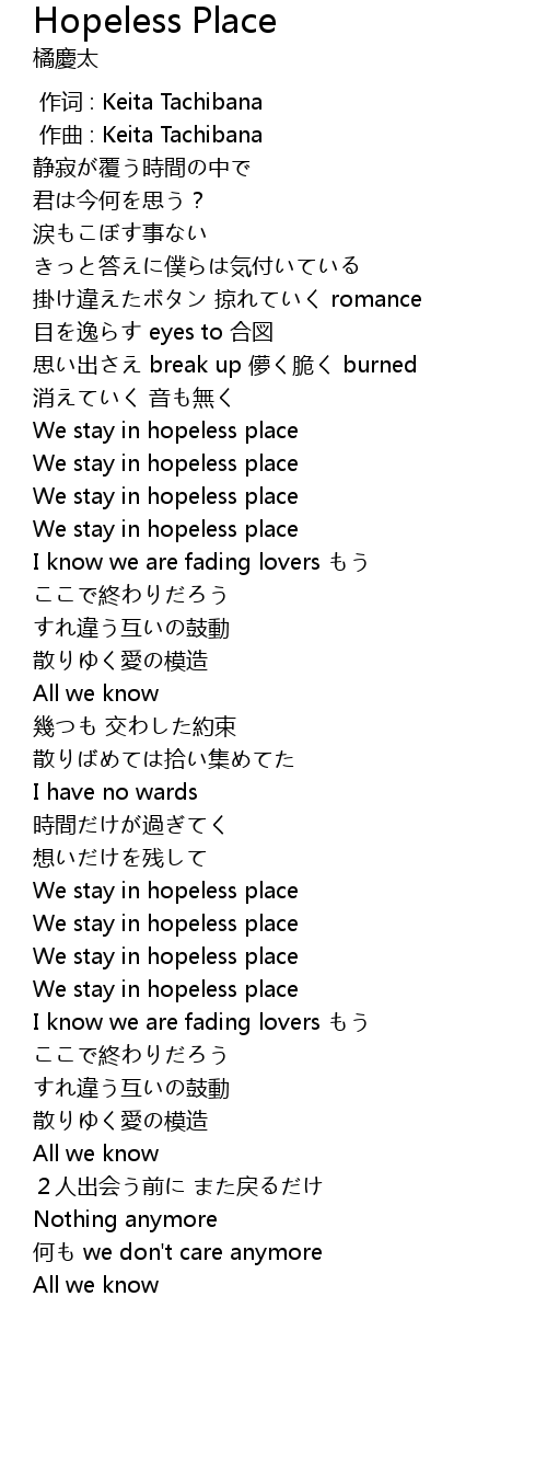 | 歌曲 | Hopeless Place |