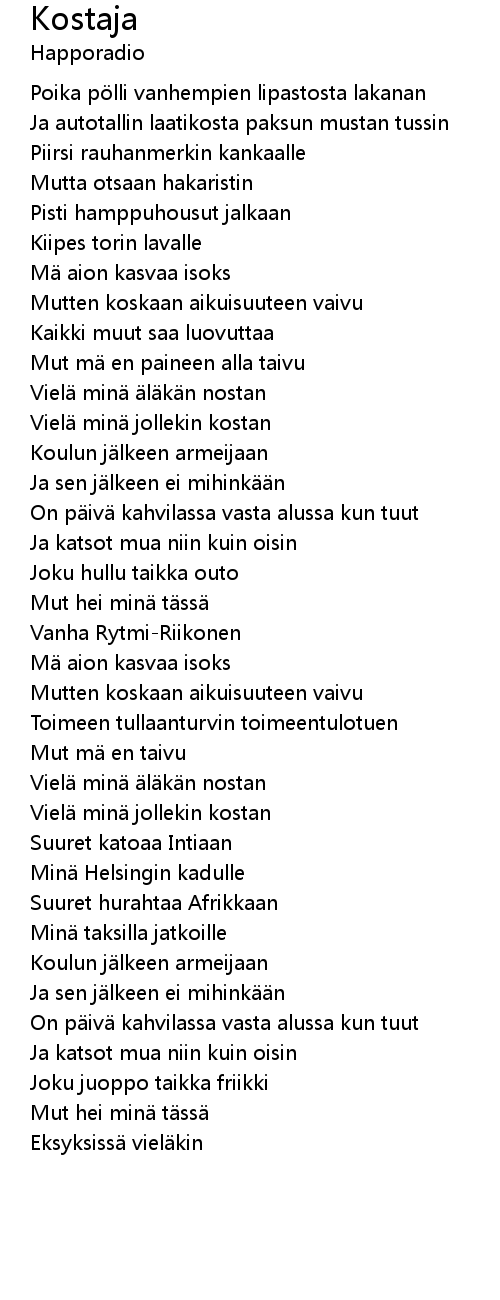 | 歌曲 | Kostaja |