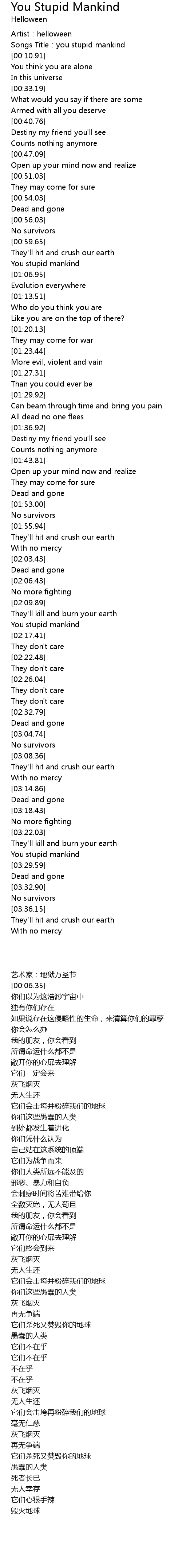 | [00:06.35] | Songs Title: you stupid mankind |
