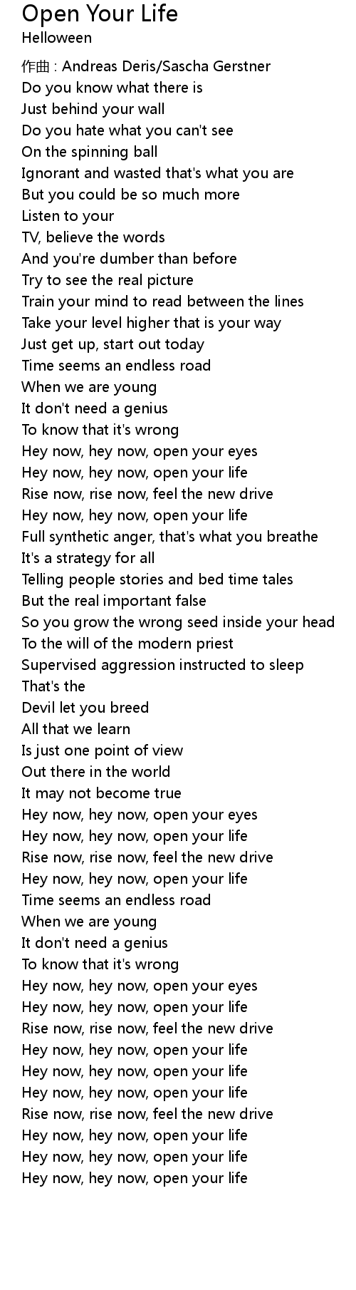 | Hey now, hey now, open your life | |