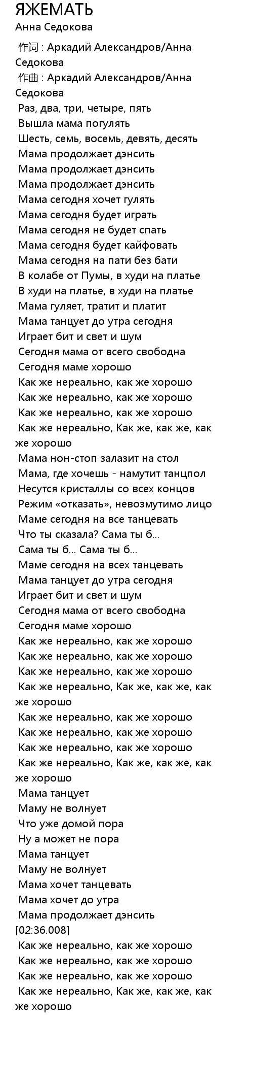 [00:00.000] 作词 : Аркадий Александров/Анна Седокова