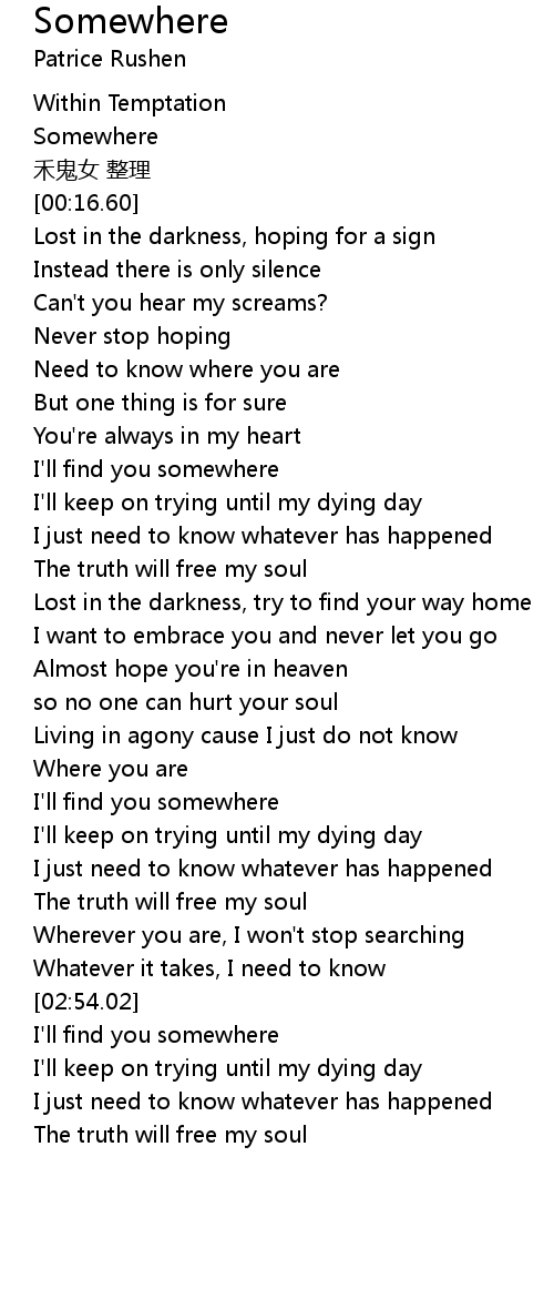 | [00:07.73] | Somewhere |