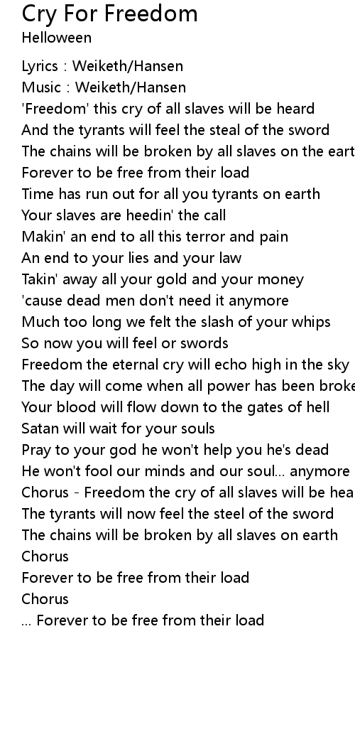 | Chorus - Freedom the cry of all slaves will be heard | |