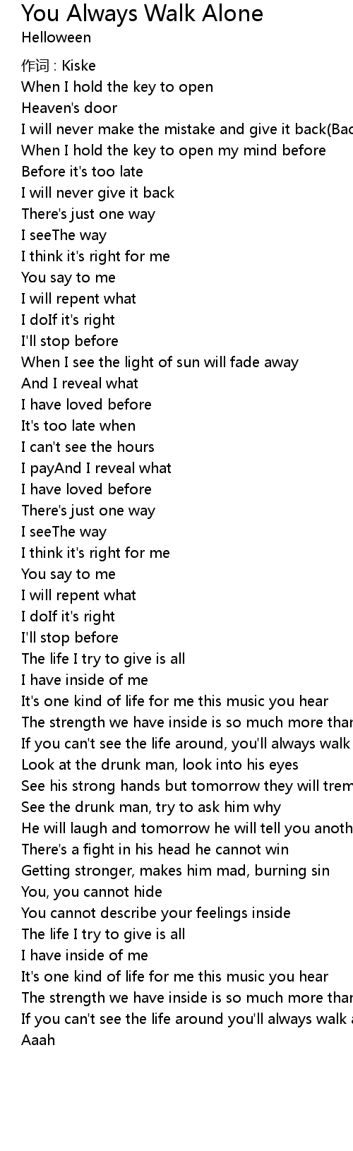 | 歌曲 | You Always Walk Alone |